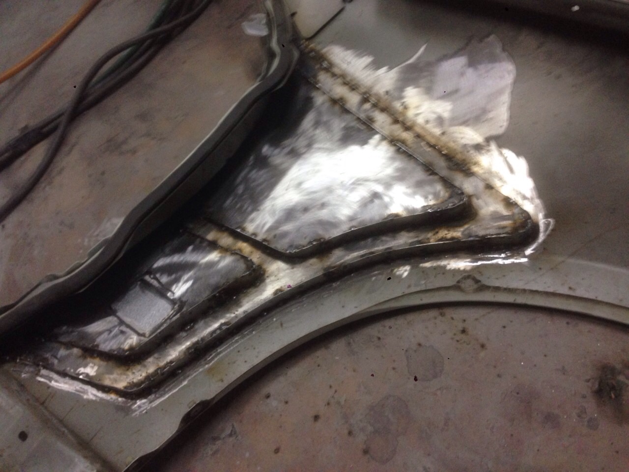 昨日、内側に押し込んだところに鉄板を溶接していきます!
