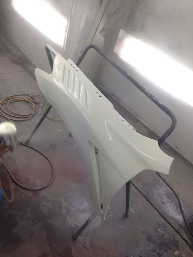 こんにちは!! 今日はクラウンのフェンダーの塗装をしました! まずはサフェを吹いた後にラッカーパテを盛って水研ぎをします\(^o^)/ その後にベースのホワイトを吹きます(*^_^*) その後にパールを吹きます\(^o^)/ うーん写真じゃ違いが全然分からないですね・・・(~o~) そして最後にクリアーを吹いて・・・ キラーン☆ 今日はここまで(*^_^*)